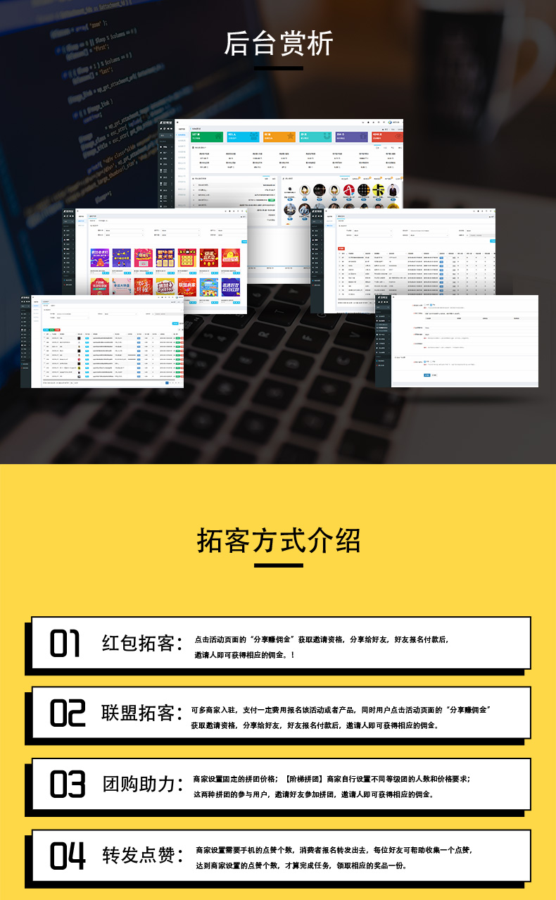 三、每个商家都有独立后台,及时掌握每一个活动的具体数据。(支付数据、转发数据、潜在数据。)