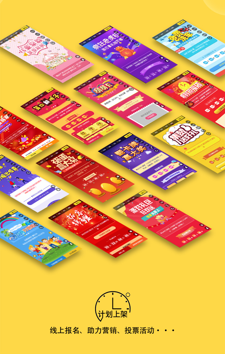 一、系统介绍:1、系统集合了20大微信营销互动项目:全民投票、问卷红包、报名拓客、异业联盟、红包拓客、助力砍价、经典拼团、阶梯拼图、锦鲤拓客、积攒送好礼、点击红包、抢福袋等。更有节日模板、行业分类、案例中心。